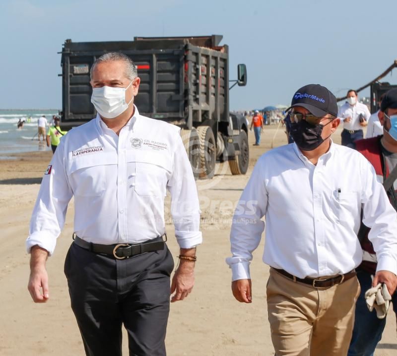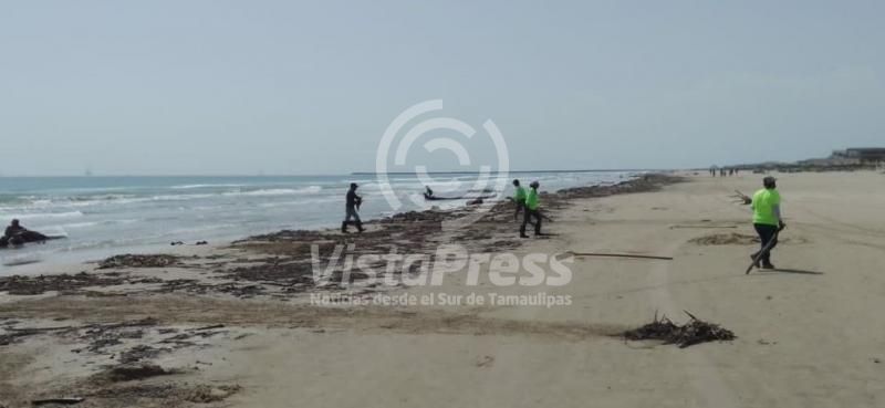 Unen esfuerzos Gobierno de Ciudad Madero y Pemex en limpieza de Playa Miramar