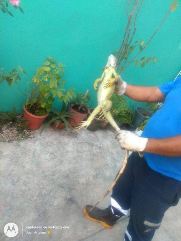 Madero, Tam. Una iguana causó pánico en moradores de una vivienda, luego de que se internó en el patio, por…