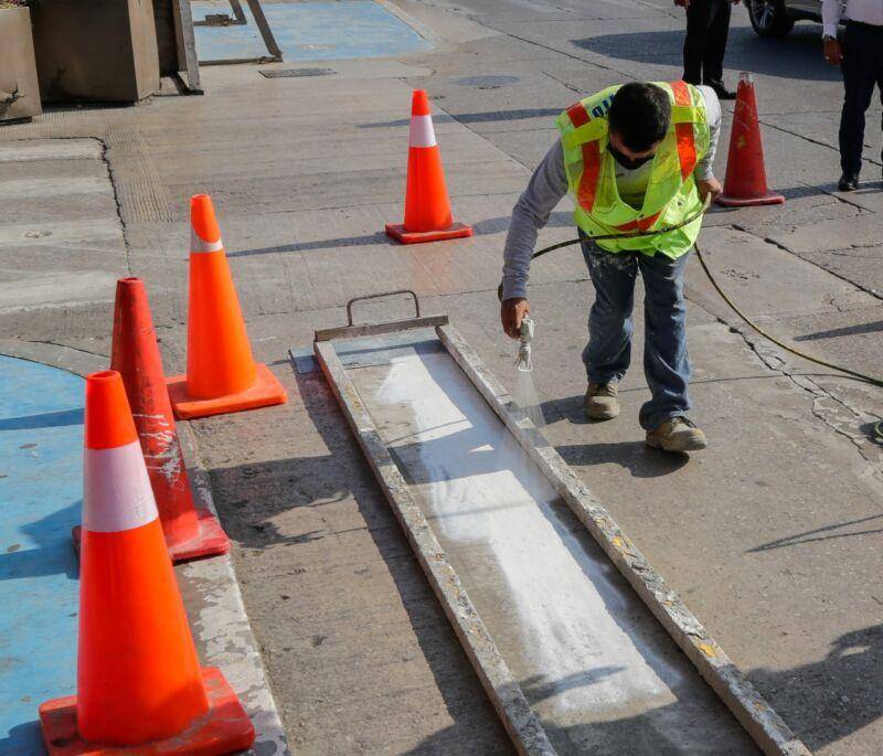 Al reforzar las acciones de mantenimiento en las principales avenidas, personal de ingeniería vial de la Dirección de Tránsito de…