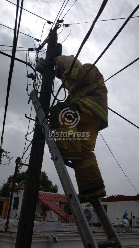 Madero, Tam.- Un felino fue rescatado tras quedar atrapado en la copa de un poste de Teléfonos de México; vecinos…
