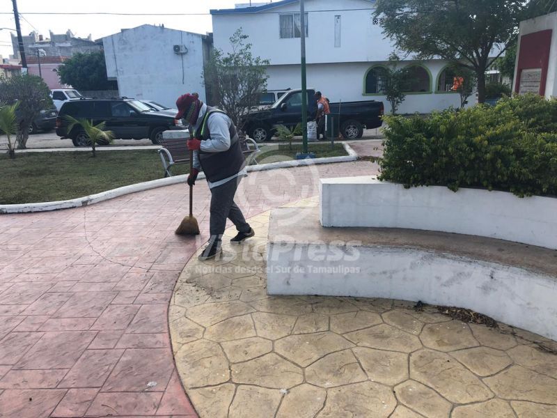 Continúan Trabajos de Limpieza en Plazas Públicas de Ciudad Madero