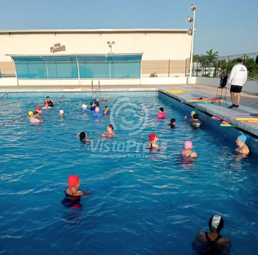 Para mejorar su calidad de vida, abuelitos maderenses asisten a las clases gratuitas de aquaeróbics que el Gobierno Municipal, a…