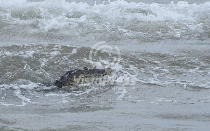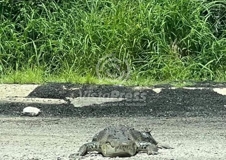 Madero, Tam.- Un cocodrilo de casi 3 metros de largo salió de entre la maleza y casi muerde a un…