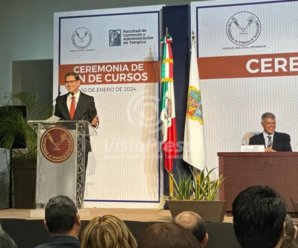 Erasmo González invitado como orador huésped al fin de cursos de alumnos de Facultad de Comercio y Administración de Tampico de la UAT