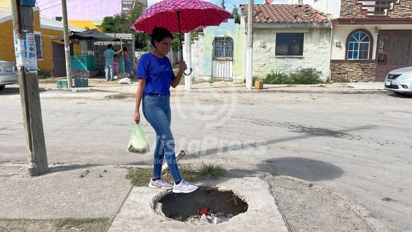 Vecinos del fraccionamiento Miramapolis en Ciudad Madero reportan un inminente riesgo para los peatones, se trata de al menos cuatro…