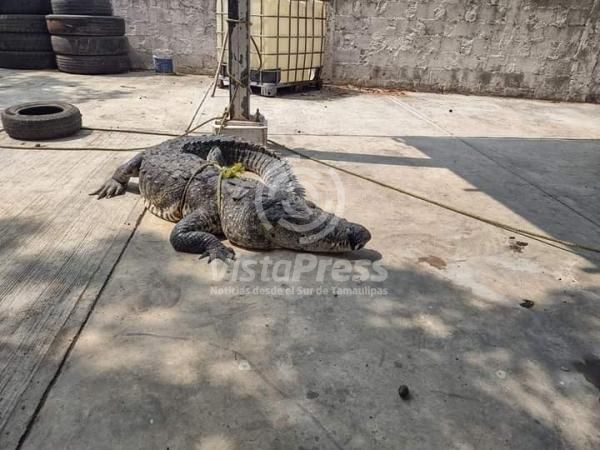 Cocodrilo muere en comandancia de Bomberos zona Norte de Madero