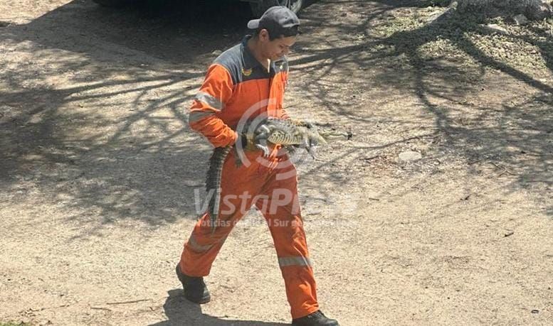 Capturan Cocodrilo en patio de la Secundaria No. 5