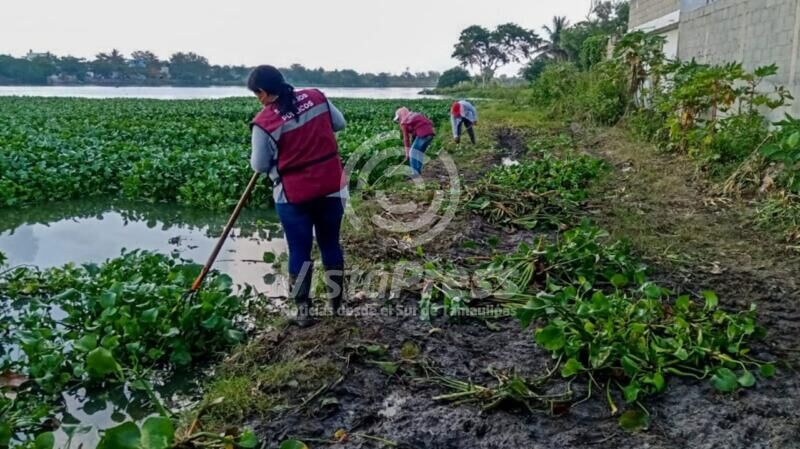Retiran desechos y lirio acuático de lagunas en Ciudad Madero