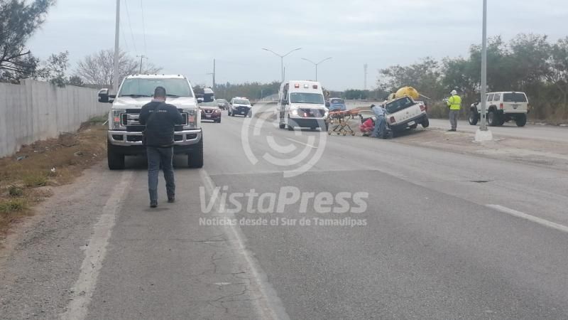 Madero, Tam. El conductor de una camioneta Pick Up resultó lesionado al derrapar y volcar en el Corredor Urbano "Luis…