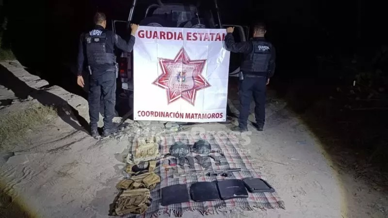 Guardia Estatal asegura arma larga y equipo táctico en Matamoros