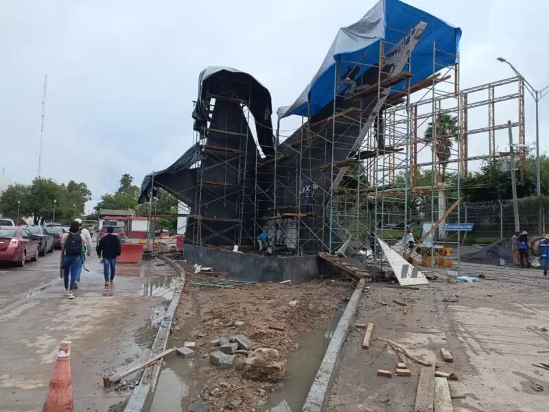 Mientras los albañiles trabajan a marchas forzadas, para terminar un monumento en memoria del revolucionario matamorense Catarino Erasmo Garza, ídolo…