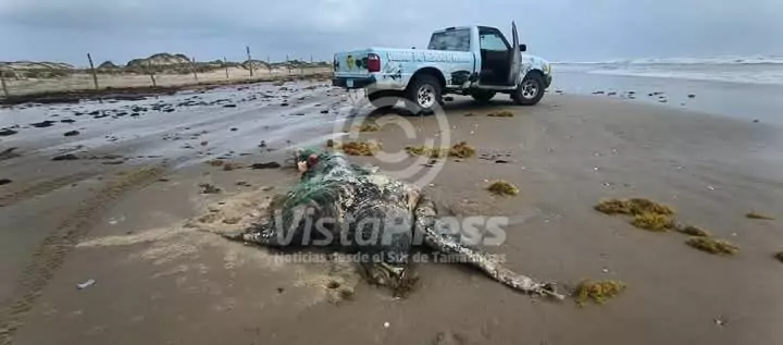 Encuentran tortuga laúd muerta enredada en redes de pesca en Playa Bagdad