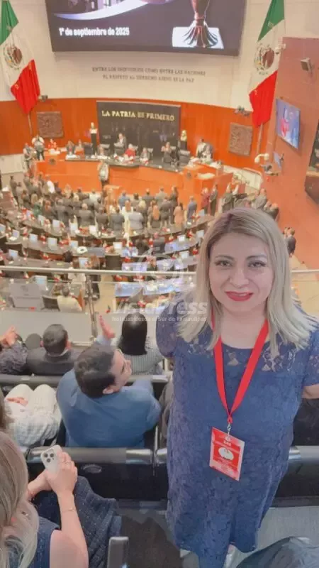 Senadora Olga Sosa asiste al informe de Noroña; se reduce la pobreza y la desigualdad, valores de la cuarta transformación