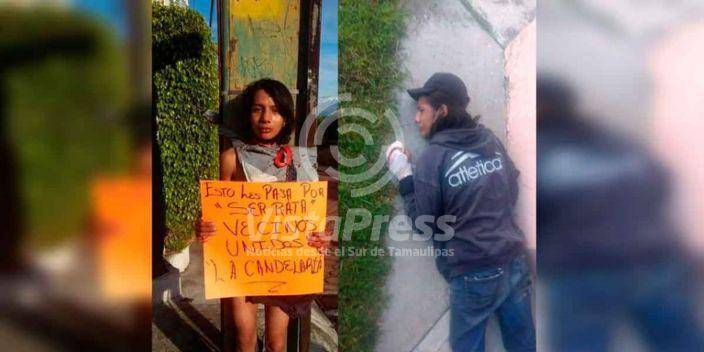 Vecinos del Fraccionamiento de la Candelaria en Atlixco, detuvieron y ataron a un poste a un hombre y una mujer,…