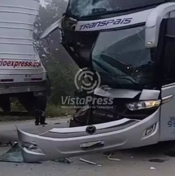 Cd. Valles, S.L.P.-Un autobús de la línea Transpais chocó contra un tráiler con razón social Frío Express, en el kilómetro…