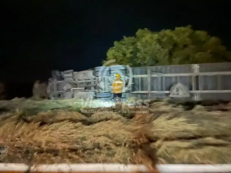 Tamuín, S.L.P.- Cuatro lesionados deja accidente presuntamente entre un tráiler que volcó y una camioneta en el libramiento Valles - Tamuin…