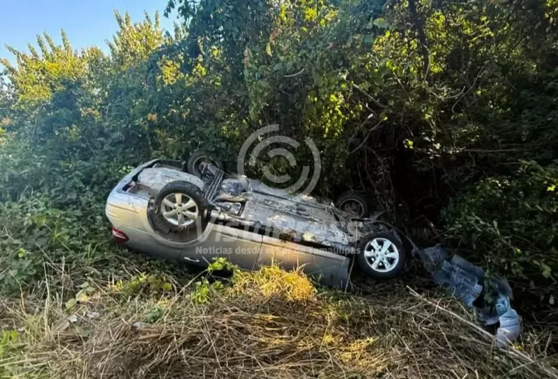 Vuelca una camioneta de transporte de personal en Tamuín