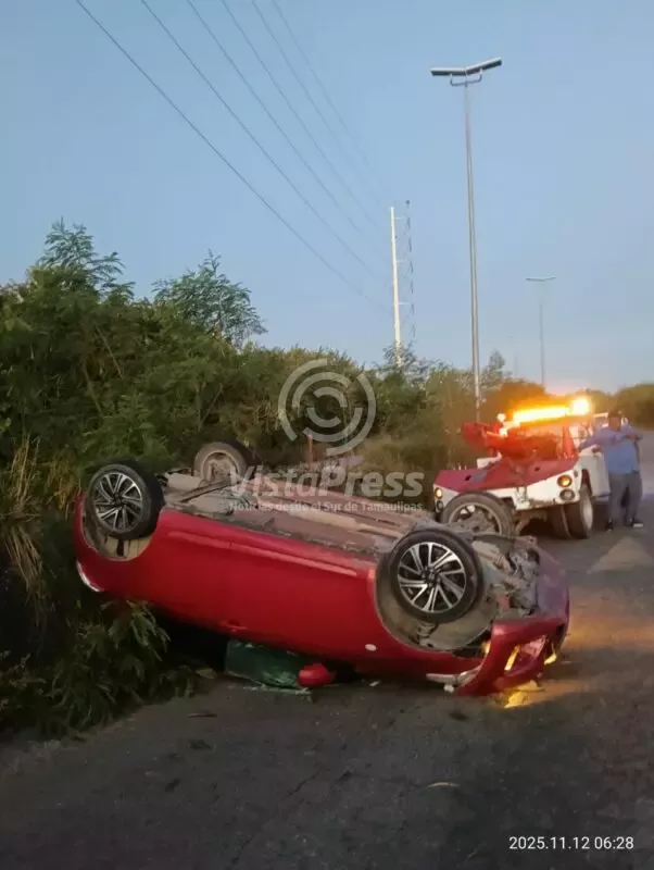 Volcadura en avenida Tamaulipas; rumbo a playa Miramar deja cuatro personas resultan lesionadas