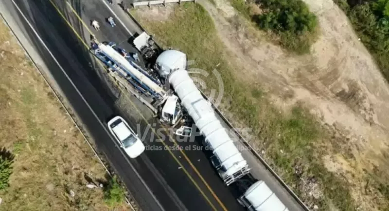 Choque de frente entre un camión doble full cargado con turbina y uno de bombero de concreto en Tampico