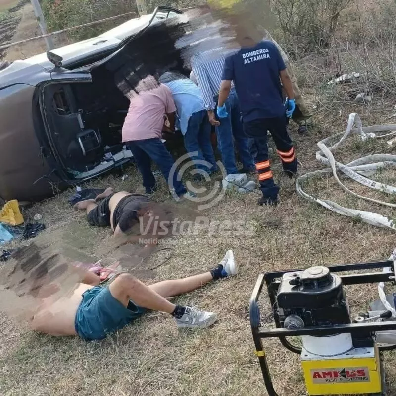 Aparatosa volcadura deja tres heridos graves en Altamira