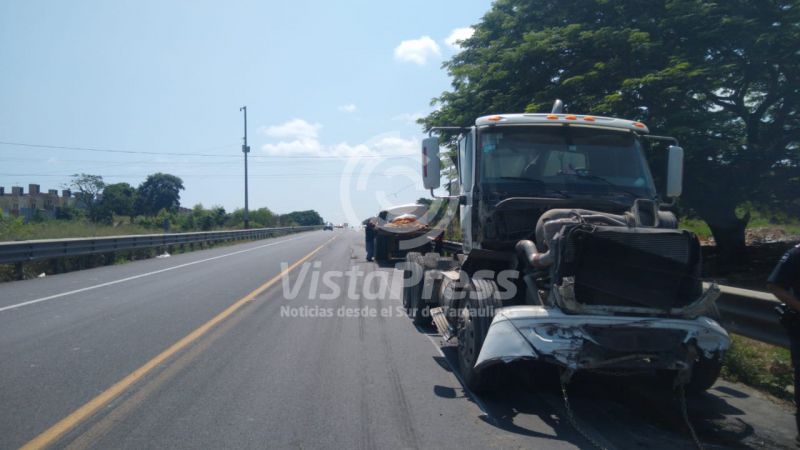 Tampico , Tam. - Un tráiler sufrió fuertes daños materiales al impactarse en contra del barandal de Protección en el…