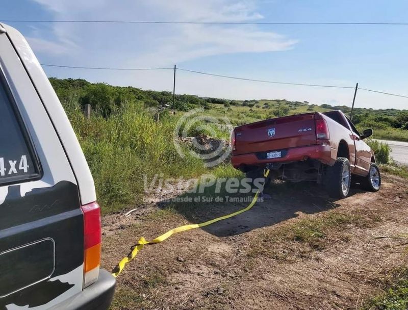 Madero, Tam.- En una brecha, una camioneta cayó a una enorme zanja, por lo que con otra unidad de doble…