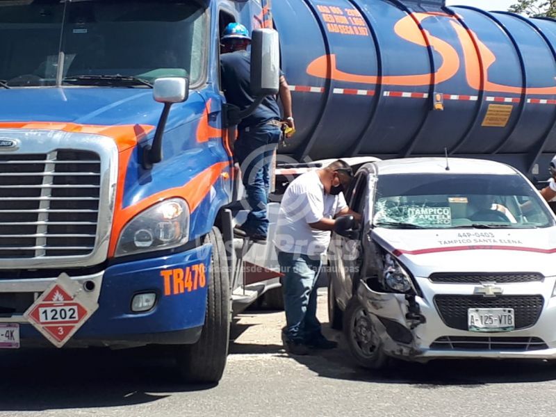 Tráiler «arrolla» a taxi y mujer sale lesionada