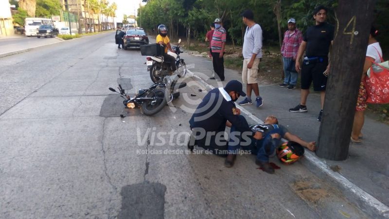 Madero, Tam- Con fuertes lesiones resultó un motociclista que chocara en contra de un automóvil particular la tarde de este…