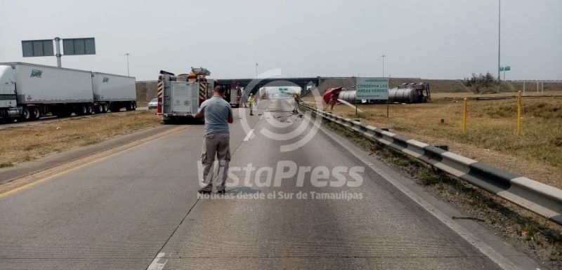 Vuelca pipa cargada con diésel hacia el Puerto de Altamira