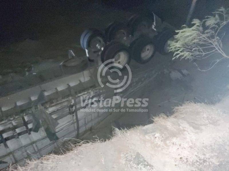 Tráiler cae de Puente el Prieto Deja dos lesionados