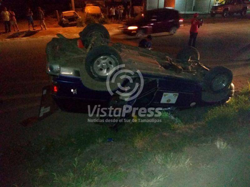 Altamira, Tam. - Un vehículo compacto terminó por salirse de la cinta de rodamiento y volcar al chocar por alcance…