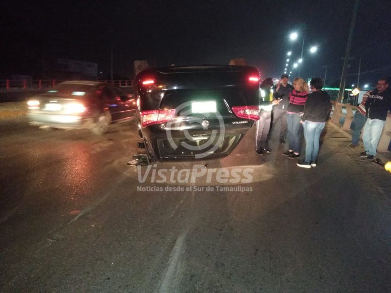 Vuelca carro sobre el puente del Barquito y pareja resulta lesionada