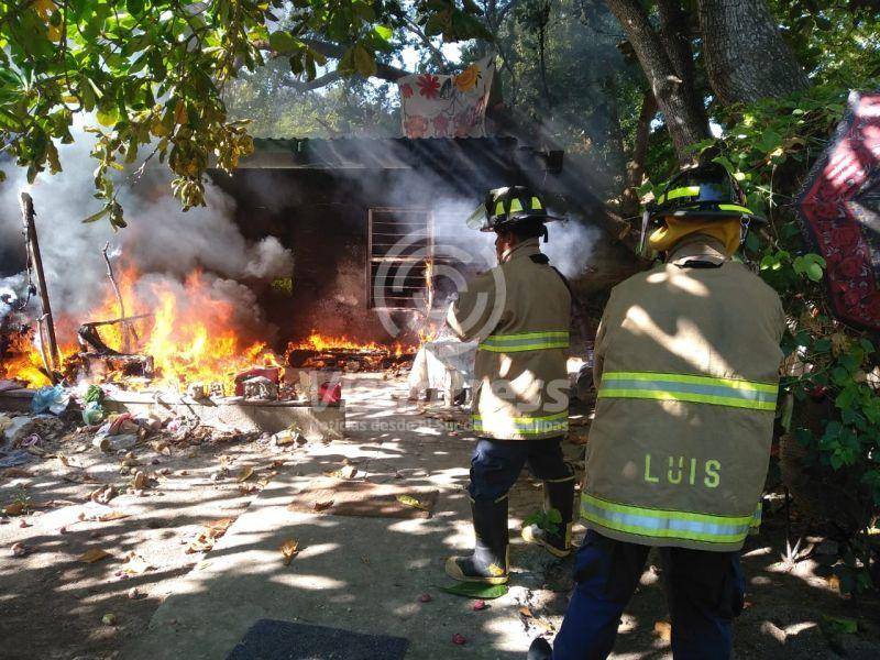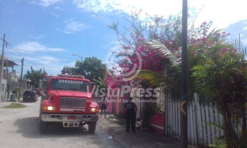 Altamira, Tam. Pequeña casa se material se incendió la madrugada de este viernes aparentemente a causa de un corto circuito,…