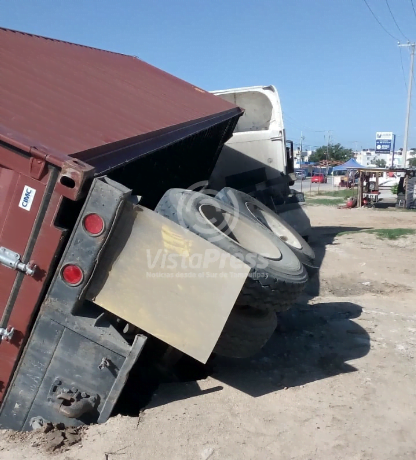 Altamira, Tam.- El remolque con un contenedor que se dirigía al Puerto de Altamira cayó en un enorme socavón que…