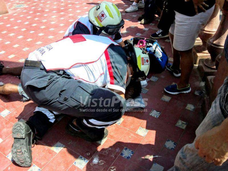Desmaya y se golpea en la cabeza en barandal del kiosco de Tampico
