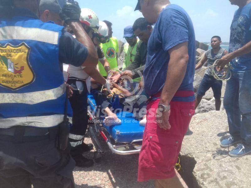 Cae anciano de escollera y toda la noche se la pasa atorado