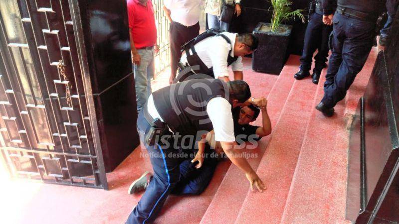 Tampico, Tam.- Tremendo zafarrancho se registró en el acceso del Palacio Municipal de Tampico, luego de que un sujeto agrediera…