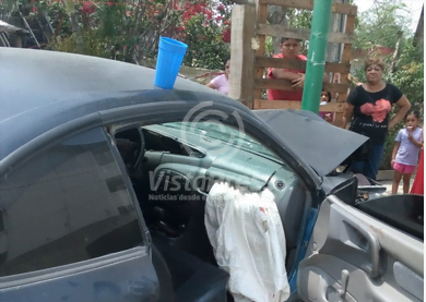 Fallan los frenos a carro y se «ensarta» en poste en Los Mangos