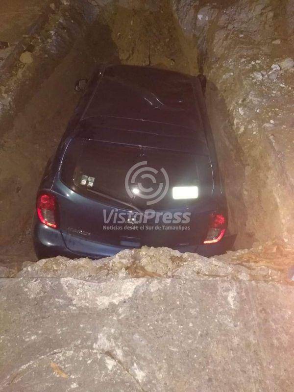 Tampico, Tam. Un despistado conductor cayó en una enorme zanja cuando circulaba en sentido contrario sobre una importante vialidad en…