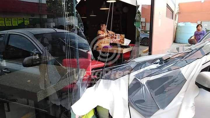 Altamira, Tam.- Un carro compacto quedó incrustado en los vitrales del restaurante denominado Super Cream, ubicado en plena zona centro…