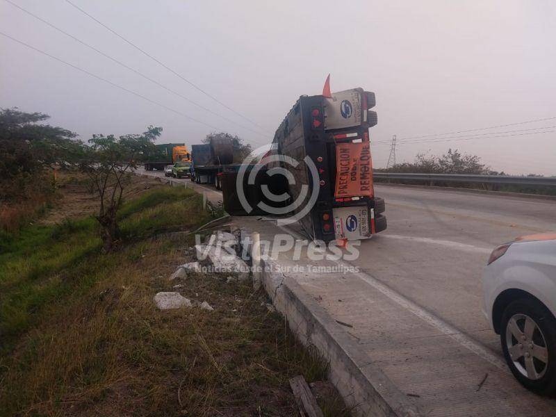 Altamira, Tam.- Sólo daños materiales de consideración fue el resultado de impresionante volcadura de un tráiler cargado con coque en…