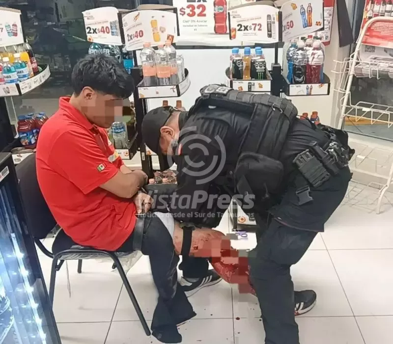 Empleado de OXXO lesionado al forcejear con cliente borracho