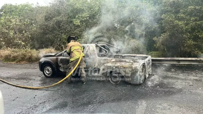 Altamira, TAM.– Una camioneta quedó completamente calcinada tras incendiarse la mañana de este lunes sobre el Corredor Urbano “Luis Donaldo…