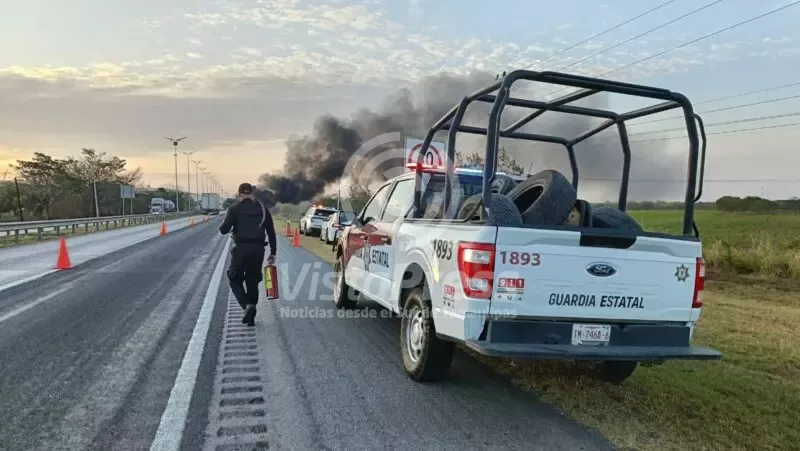 Incendio de vehículo cierra carretera en la Tampico Mante
