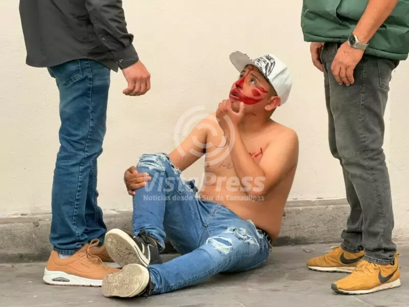 Joven pintado como “payaso” y sin playera causa escándalo en mercados de Tampico; termina detenido