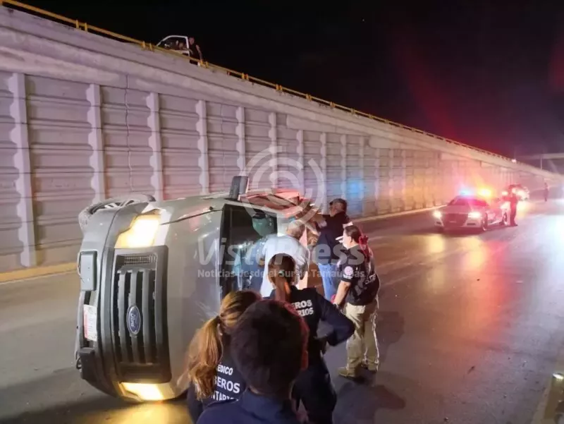 Vuelca camioneta durante la madrugada; no hubo lesionados