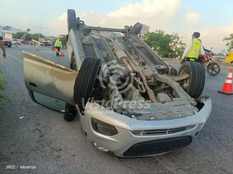 Altamira, Tam.- Un automóvil terminó volcado tras impactarse contra el barandal metálico de contención en el acceso al puente que…