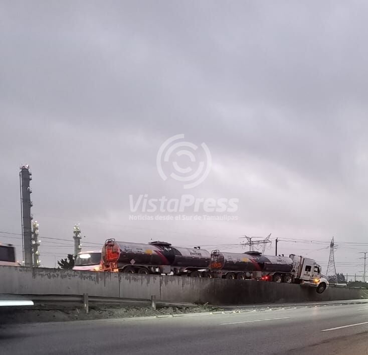 Altamira, TAM.- A punto de una tragedia estuvo un tráiler que quedó pendiendo en el puente de Monte Alto, luego…