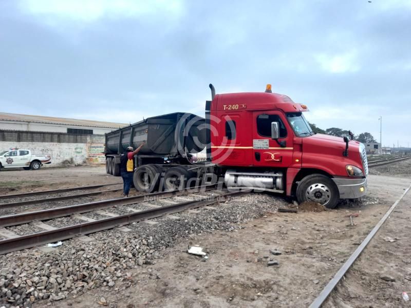 Altamira, Tam. En las vías del tren se quedó varado un tráiler con góndola de volteo, esto a causa de…