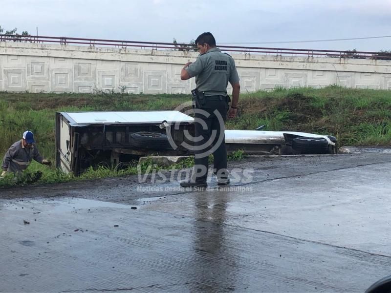 Altamira, Tam. Una camioneta con caja volcó en la lateral del Puente Roto resultando ileso el conductor. Lo anterior ocurrió…